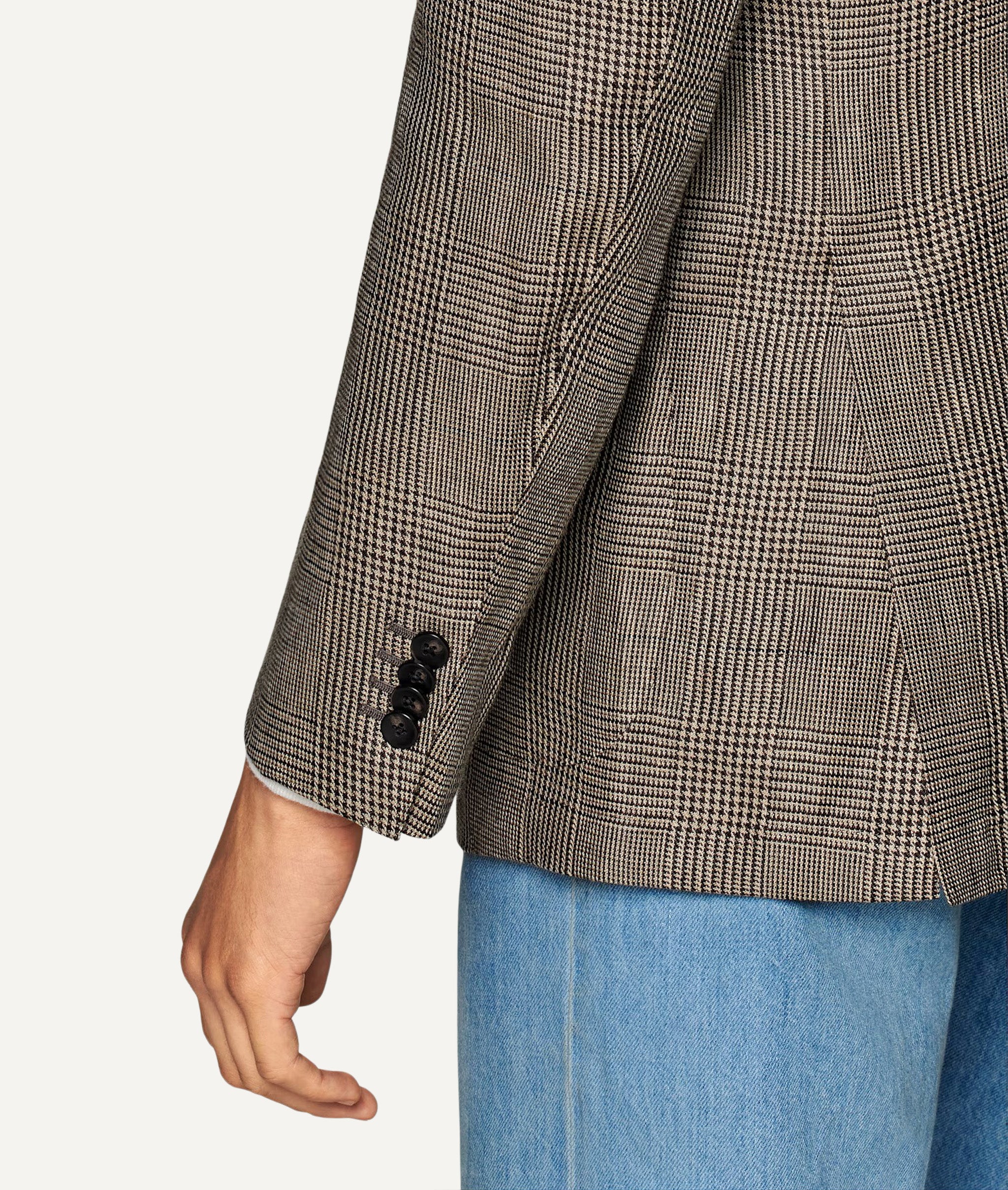 Handcrafted in Italy, the Summer Jacket is tailored from a refined wool linen blend woven by Alfred Brown at 260gr/ml. Composed of 65% wool and 35% linen, the fabric offers breathable lightness, a soft natural texture and a clean relaxed drape, creating an elegant warm season silhouette with modern versatility.